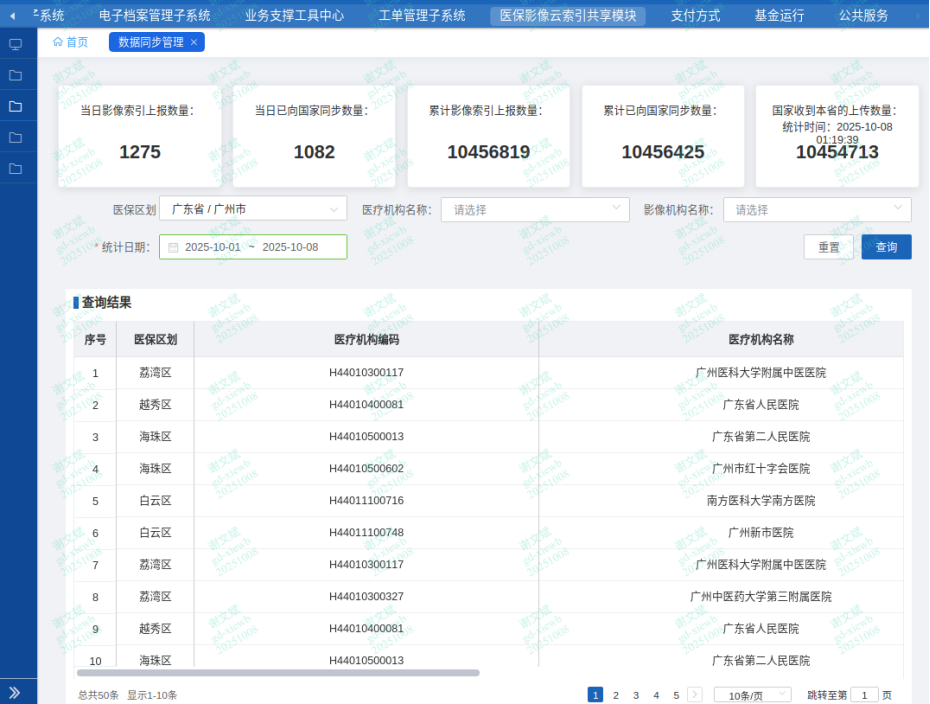 截至目前,广东全省已有广州、深圳等市208家定点医疗机构开展试点,按照国家医保局《“医保影像云索引”方案》,向国家医保信息平台上传影像云索引记录超过1045万条。