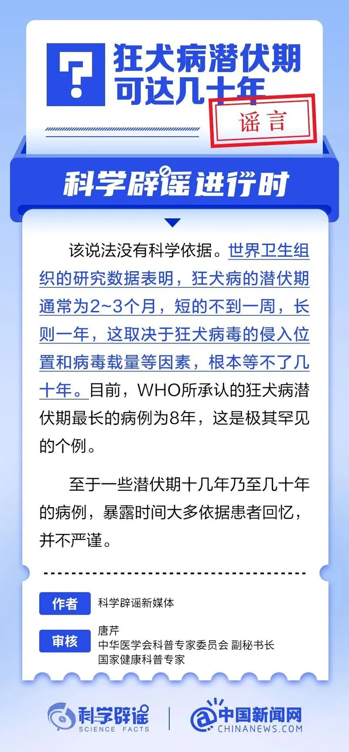 狂犬病潜伏期可达几十年?
